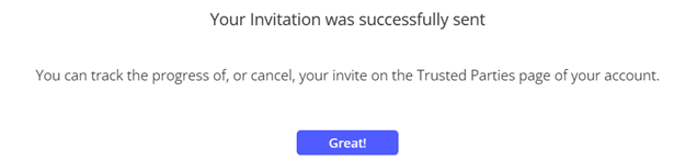 Trusted Party relationships are always mutual – when you invite someone to be your Trusted Party, you automatically become their Trusted Party once they accept the invitation.