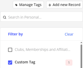 When you select a tag, your Vault will filter to display only the records with that tag.