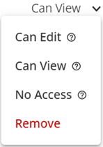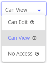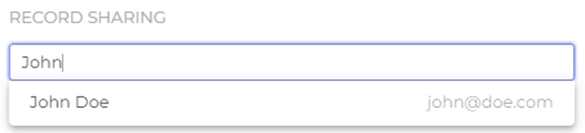 To share a record or tag, search for it by name in the input field, select the desired record or tag, then choose the permission level from the dropdown menu: